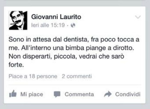 Io dico cose slegate dalla realtà. La butto sull’ironia. Tu che sei sempre così ironico non pensi che chi più scherza spesso meno tollera la realtà?